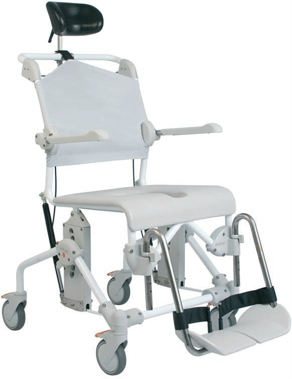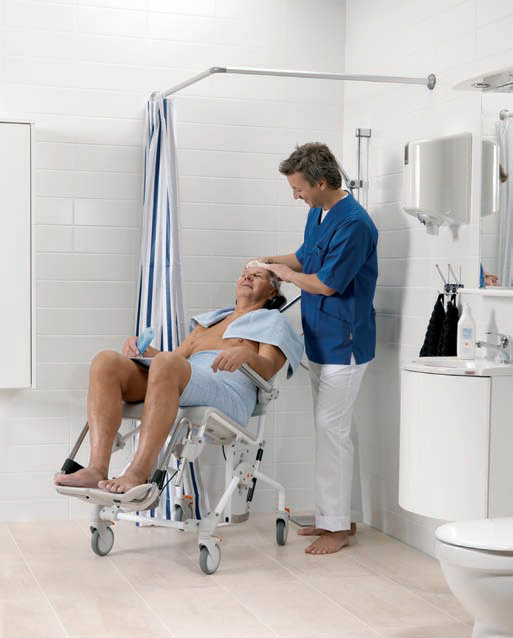 Esta silla permite llevar a cabo las tareas de higiene de forma más cómoda y segura tanto para el usuario como para el cuidador. El conjunto del asiento y respaldo son regulables en altura y en inclinación. El control de inclinación de la silla está situado de tal manera que el cuidador y el paciente mantienen contacto visual en todo momento, lo que contribuye a una mejor comunicación entre ambos y a crear un ambiente de confianza.<br />