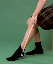 Barra de madera con unos ganchos en los extremos que sirve de ayuda para poner y quitar la ropa.