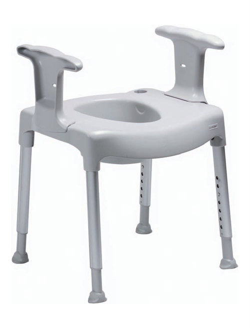Elevador de asiento inodoro con reposabrazos que puede ajustarse en altura y ligeramente en ángulo de inclinación para que sea más fácil levantarse. El asiento es muy ligero, pesa sólo 3,9 kg lo que permite trasladarlo con comodidad.