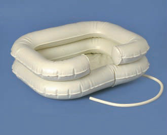 De resistente plástico vinilo, con dos aros hinchables y una abertura para el cuello. Es muy práctico para lavar a una persona encamada. Se puede inflar fácilmente sin necesidad de bomba. Incorpora un tubo de drenaje para evacuar el agua.